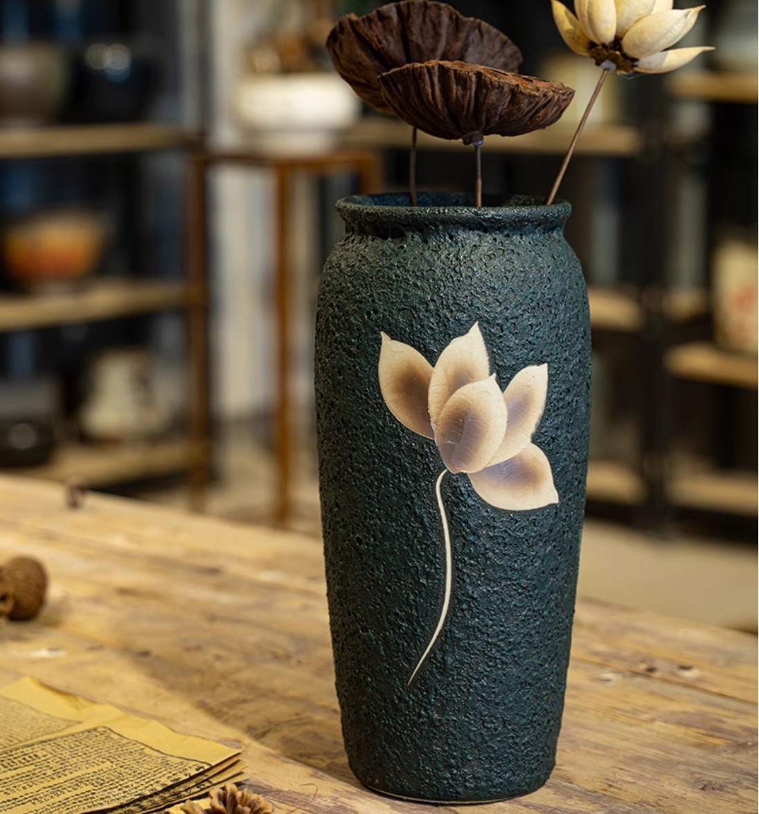 Color classification: carved Magnolia (height 30 mouth 11cm) with holes, carved Magnolia (height 30 mouth 11cm) without holes