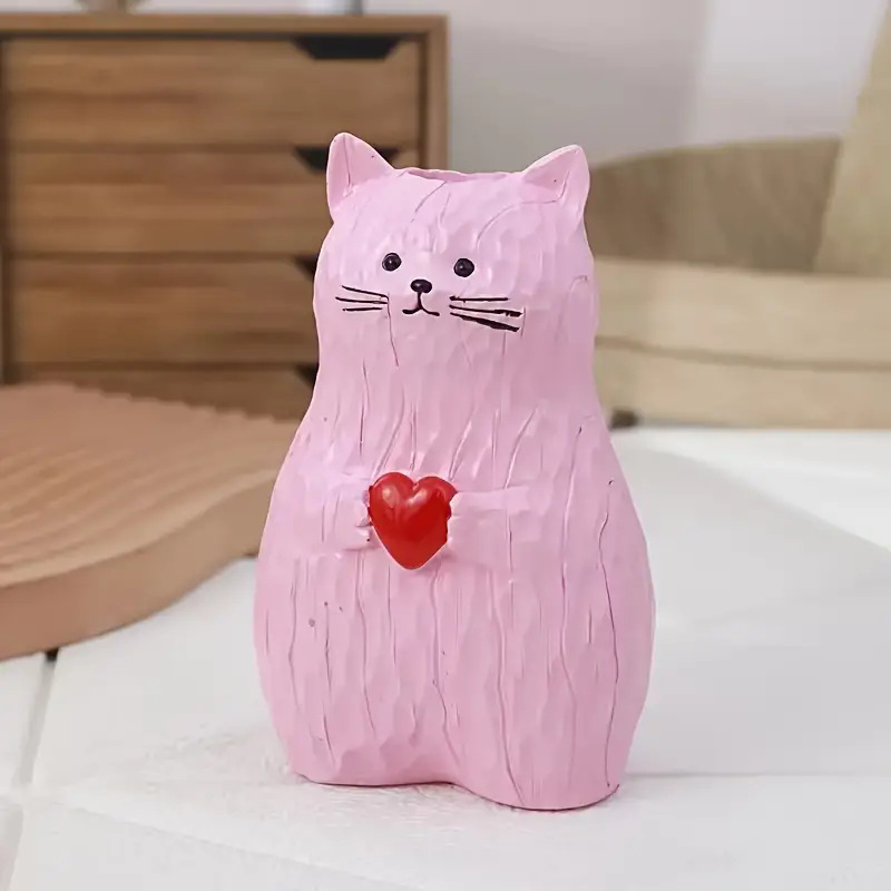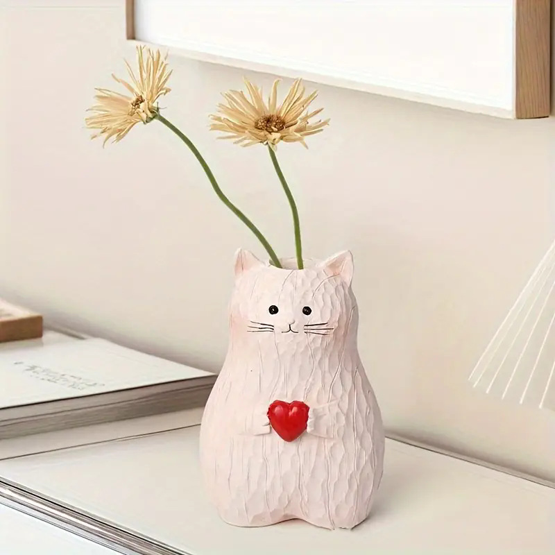 Cute Cat Vase With Heart – Resin Flower Pot Decoration for Home & Living