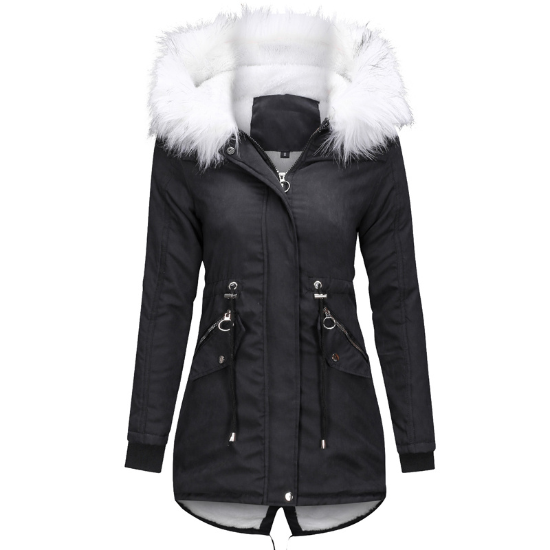 The hooded design and adjustable belt provide both practicality and style, while the medium-length cut flatters all body shapes. Perfect for chilly days, city walks, or casual outings, this coat blends European-inspired design with cozy comfort for your winter wardrobe.
